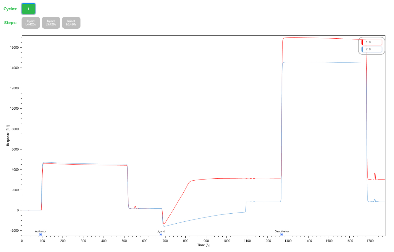 - 氨基偶联过程有一定风险会影响配体蛋白活性,因此在实际测试中,可根据预富集结果,设计不同固定密度的配体进行互作分析。根据结合信号反向考察不同密度下配体蛋白的活性比例,进而得到更为可靠的分析结果;